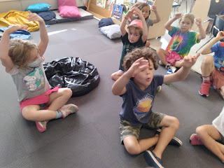 We have spent a lot of time naming our own feelings and identifying the appropriate color, as well as naming the feelings of characters from picture books and sorting them into corresponding colors. We all feel a range of emotions on any given day, which is expected and okay, but pleasant feelings are optimum, and we have talked about strategies for managing unpleasant emotions and hopefully moving toward a more pleasant feeling. One of the simplest and most effective strategies is taking deep breaths. We have practiced a variety of these including belly breathing, balloon breathing, birthday cake breathing, snake breathing, bunny breathing, roller coaster or 5 finger breathing, and volcano breathing. They are all similar in that they encourage deep, slow breathing which is often a first step in feeling calm and pleasant.